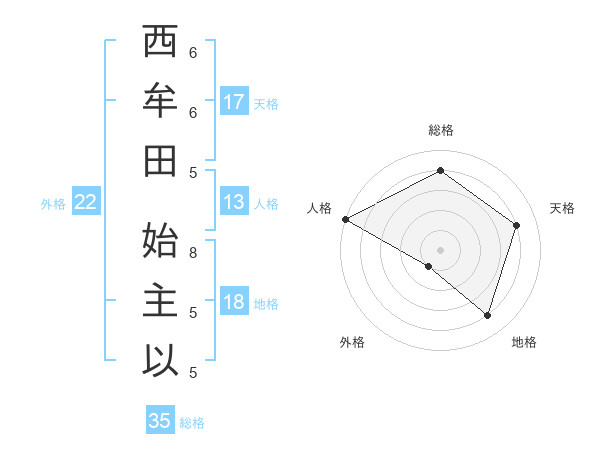 西牟田 始主以さんを姓名の画数から五運を鑑定