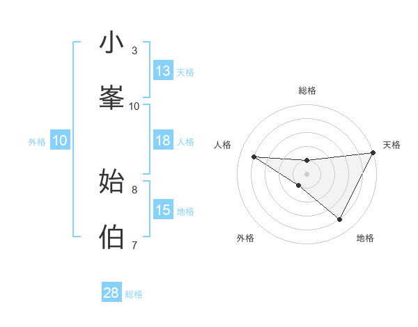 小峯 始伯さんの天格は13画の5点!