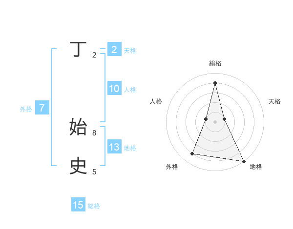 丁 始史さんの総格は15画の4点!