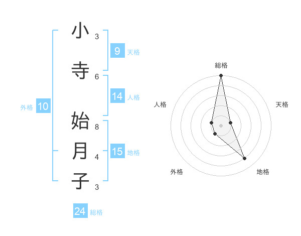 小寺 始月子さんを姓名の画数から五運を鑑定