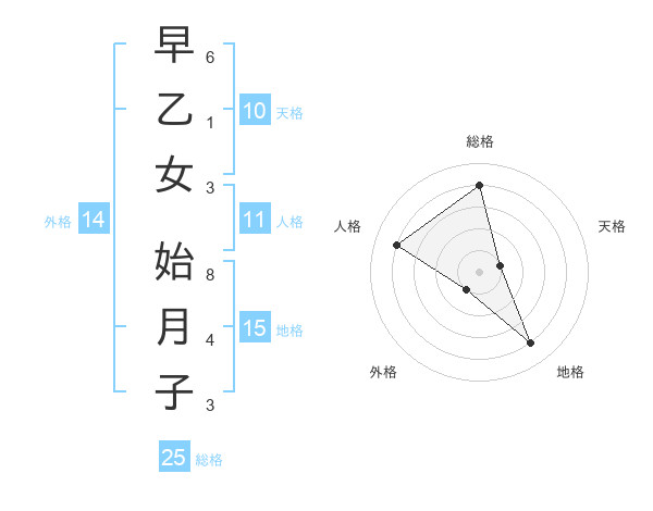 早乙女 始月子さんを姓名の画数から五運を鑑定