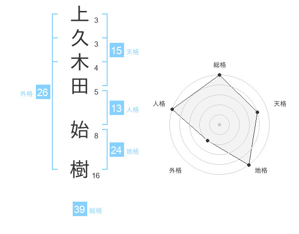 上久木田 始樹さんを姓名の画数から五運を鑑定