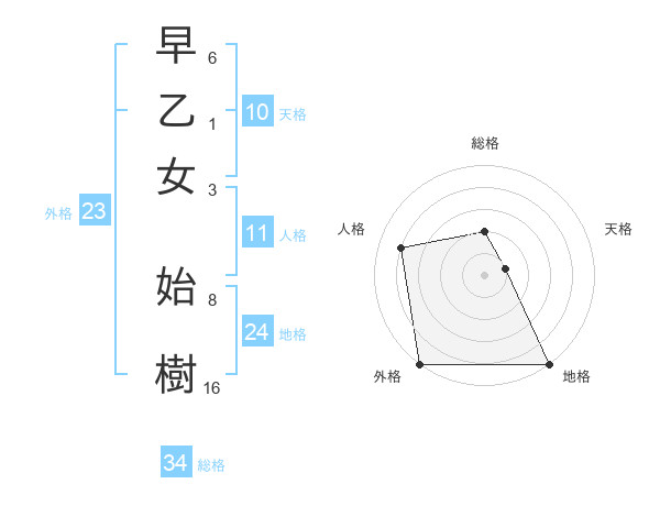 早乙女 始樹さんを姓名の画数から五運を鑑定