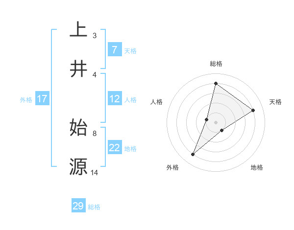 上井 始源さんの天格は7画の4点!