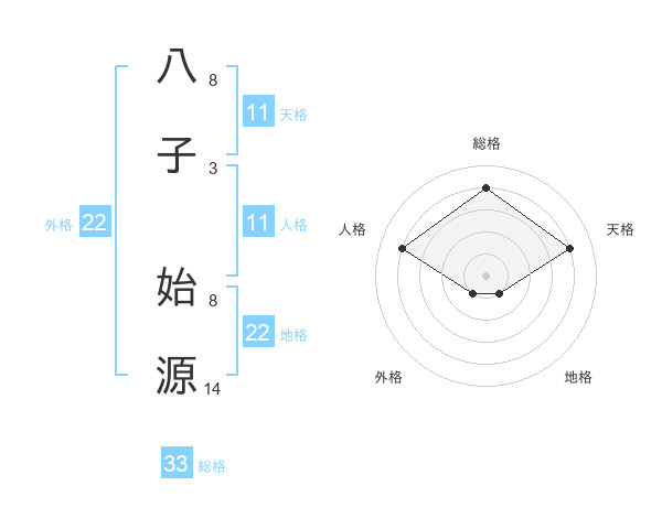 八子 始源さんの総格は33画の4点!