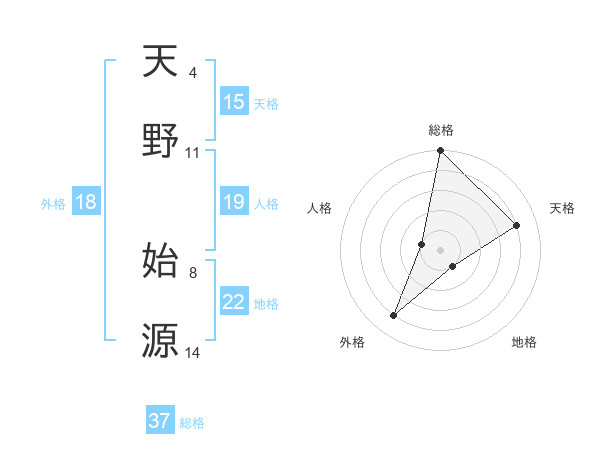 天野 始源さんの総格は37画の5点!