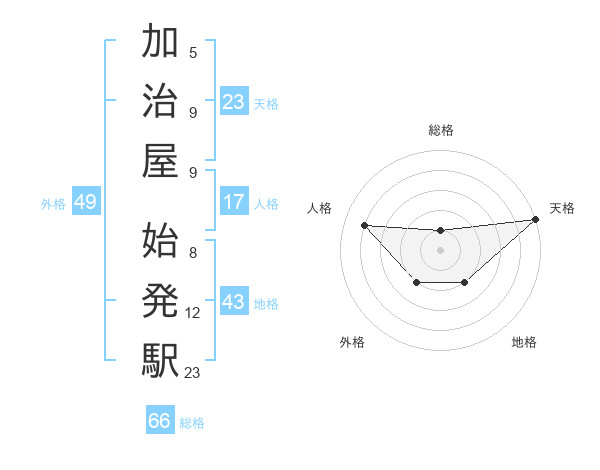 加治屋 始発駅さんを姓名の画数から五運を鑑定