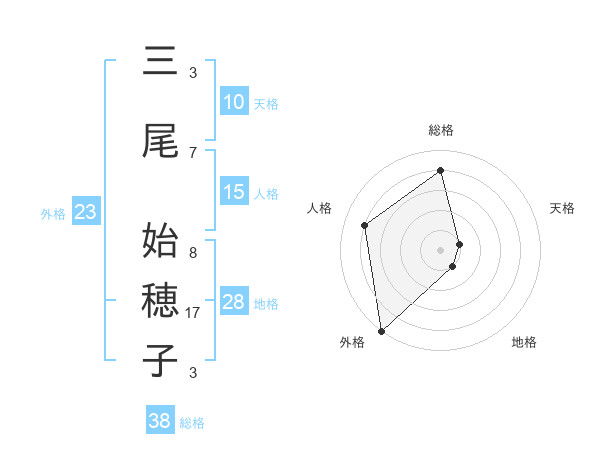 三尾 始穂子さんの総格は38画の4点!