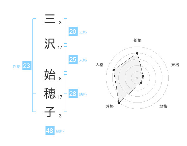三沢 始穂子さんを姓名の画数から五運を鑑定