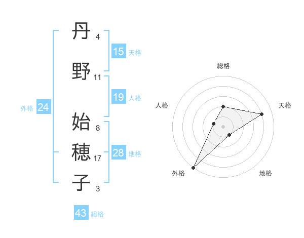 丹野 始穂子さんを姓名の画数から五運を鑑定