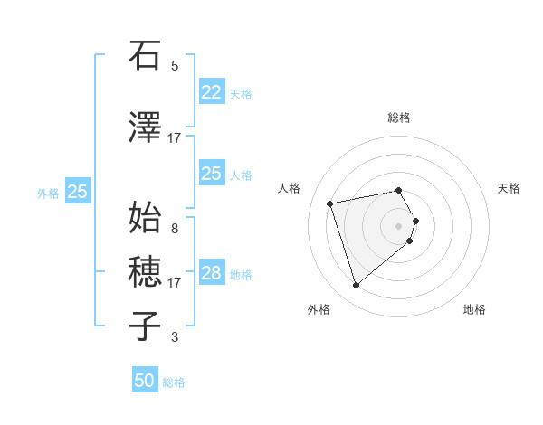石澤 始穂子さんの総格は50画の2点!