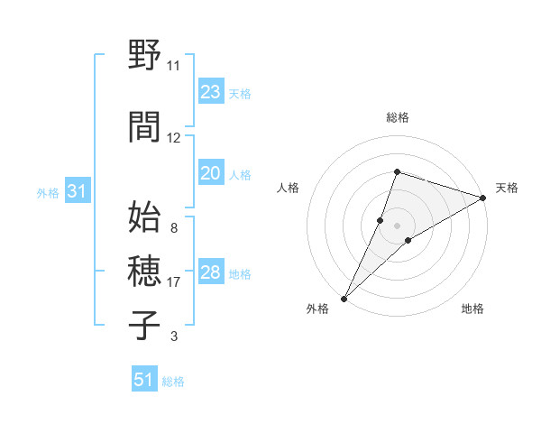 野間 始穂子さんを姓名の画数から五運を鑑定
