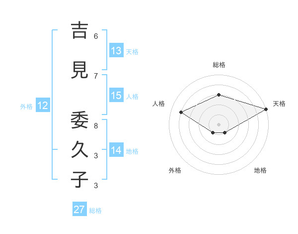 吉見 委久子さんを姓名の画数から五運を鑑定