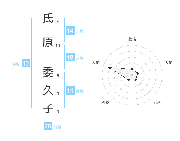 氏原 委久子さんを姓名の画数から五運を鑑定