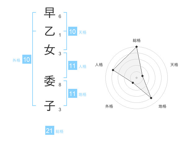 早乙女 委子さんを姓名の画数から五運を鑑定