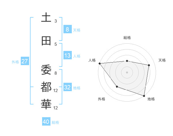土田 委都華さんの天格は8画の4点!