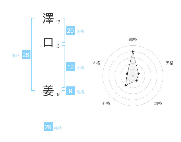 澤口 姜さんの総格は29画の4点!