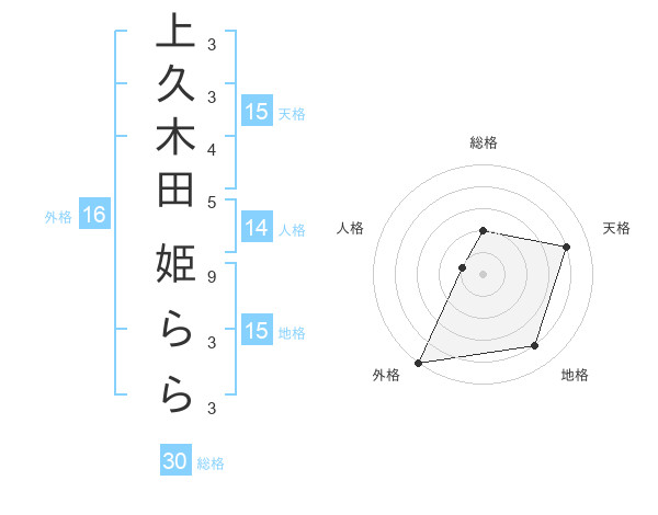 上久木田 姫ららさんを姓名の画数から五運を鑑定