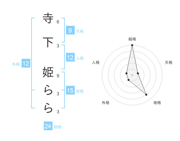 寺下 姫ららさんを姓名の画数から五運を鑑定