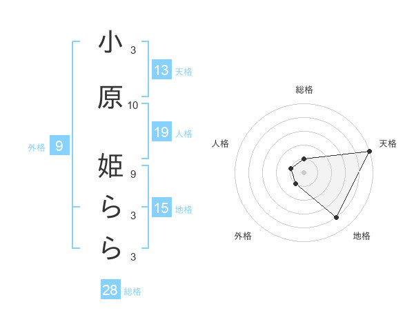 小原 姫ららさんを姓名の画数から五運を鑑定