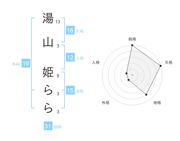 湯山 姫ららさんの総格は31画の5点!