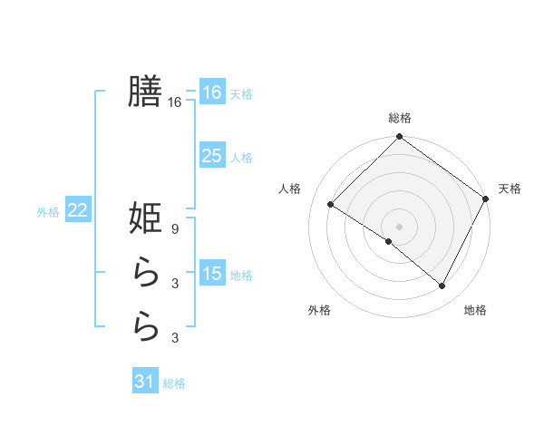 膳 姫ららさんの総格は31画の5点!