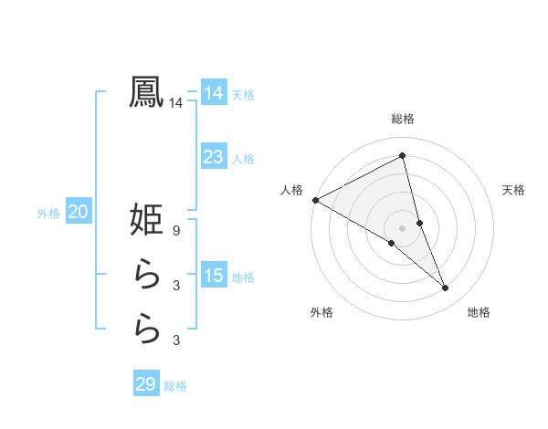 鳳 姫ららさんを姓名の画数から五運を鑑定