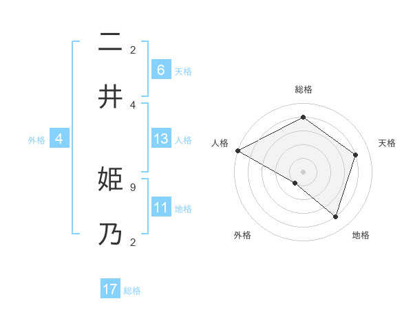 二井 姫乃さんを姓名の画数から五運を鑑定