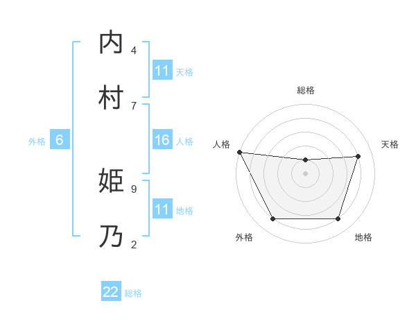 内村 姫乃さんの総格は22画の1点