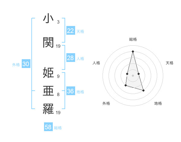 小関 姫亜羅さんを姓名の画数から五運を鑑定