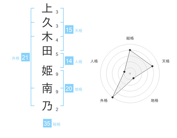 上久木田 姫南乃さんの外格は21画の5点!