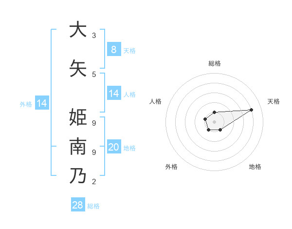 大矢 姫南乃さんを姓名の画数から五運を鑑定