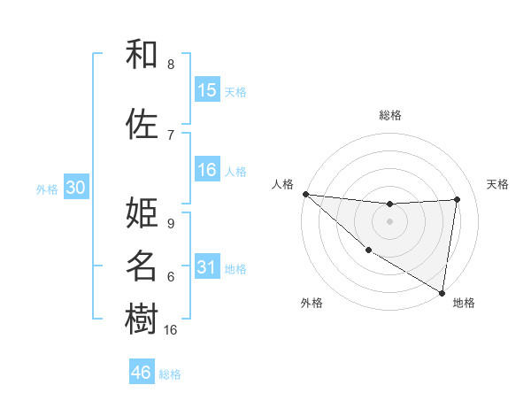 和佐 姫名樹さんの総格は46画の1点!