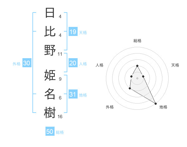 日比野 姫名樹さんを姓名の画数から五運を鑑定