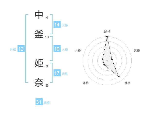 中釜 姫奈さんの総格は31画の5点!