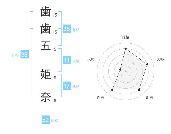 歯歯五 姫奈さんの総格は52画の4点!