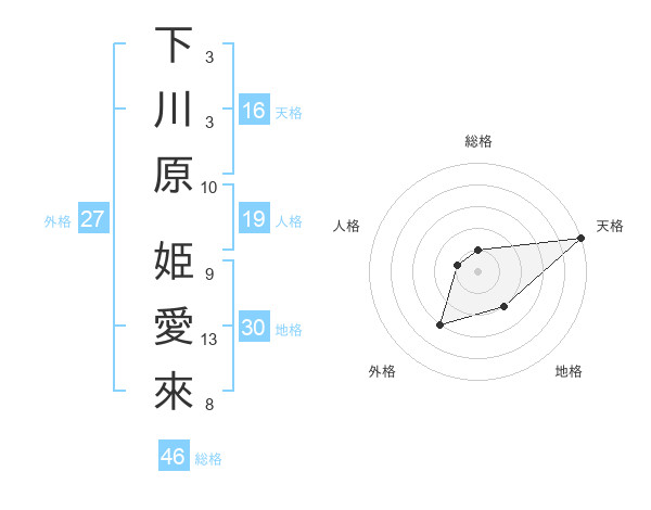 下川原 姫愛來さんを姓名の画数から五運を鑑定