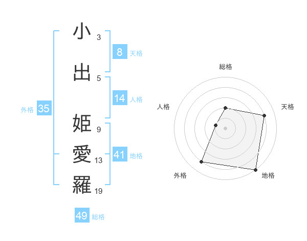 小出 姫愛羅さんの天格は8画の4点!
