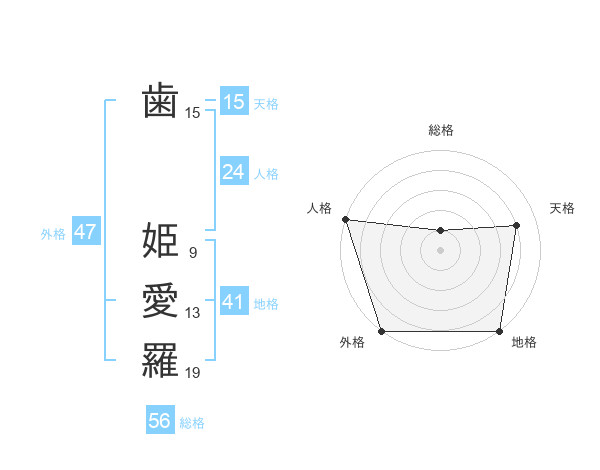 歯 姫愛羅さんの外格は47画の5点!