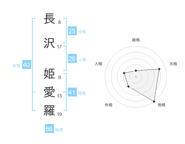 長沢 姫愛羅さんを姓名の画数から五運を鑑定
