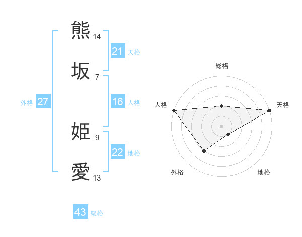 熊坂 姫愛さんを姓名の画数から五運を鑑定
