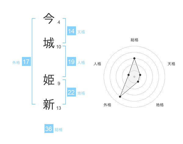 今城 姫新さんの天格は14画の1点!