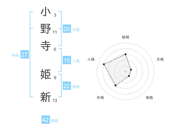 小野寺 姫新さんの総格は42画の3点!