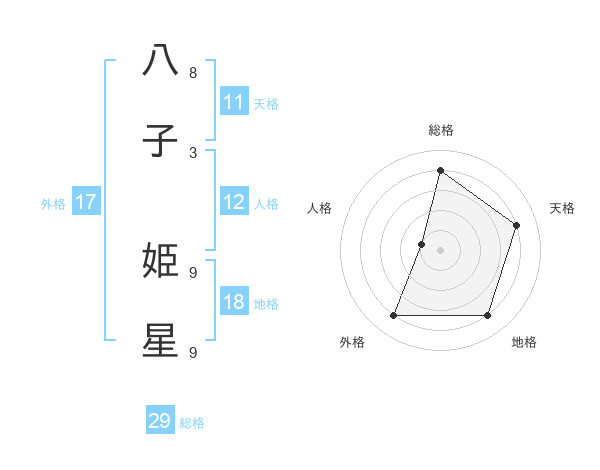 八子 姫星さんの総格は29画の4点!