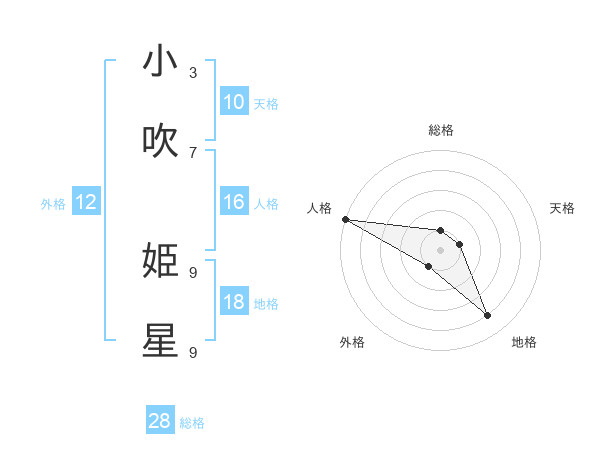 小吹 姫星さんを姓名の画数から五運を鑑定