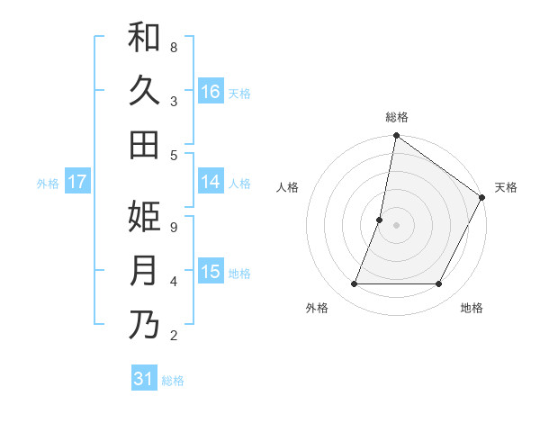 和久田 姫月乃さんを姓名の画数から五運を鑑定