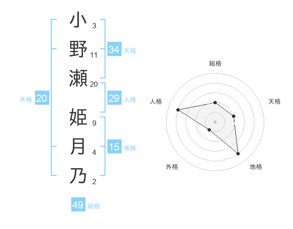 小野瀬 姫月乃さんを姓名の画数から五運を鑑定
