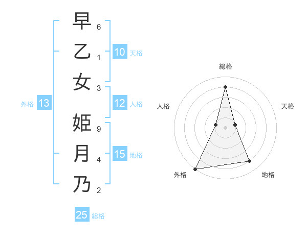 早乙女 姫月乃さんを姓名の画数から五運を鑑定