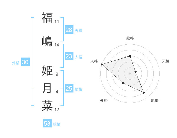 福嶋 姫月菜さんを姓名の画数から五運を鑑定