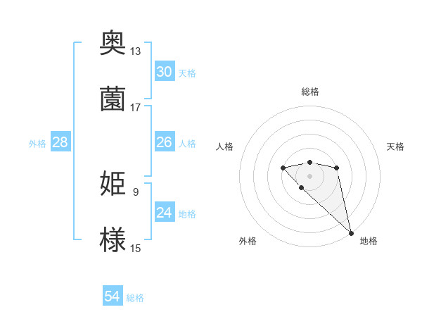 奥薗 姫様さんの天格は30画の2点!